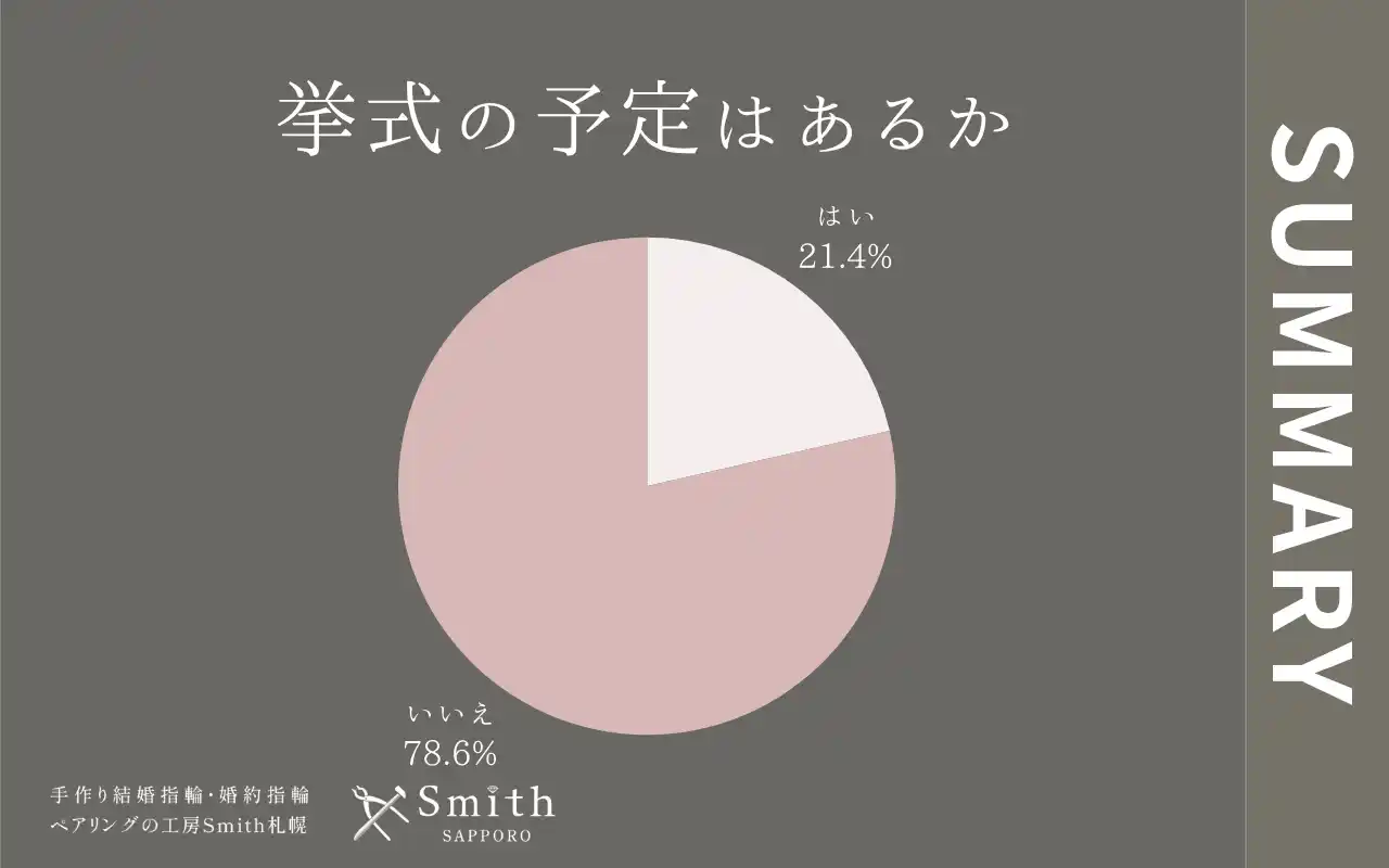 来店理由では「ブランドの信頼性と知名度」がトップとなり、工房Smith札幌本店が長年積み重ねてきた実績への信頼が新たなご縁を生み出していることが伺えます。また、挙式を予定されていないカップル様が約8割を占める傾向が続いており、結婚式という形にとらわれず「ふたりで手作りする体験そのものを結婚の記念にしたい」という価値観が、今や一つのスタンダードとなりつつあることを感じさせます。 |