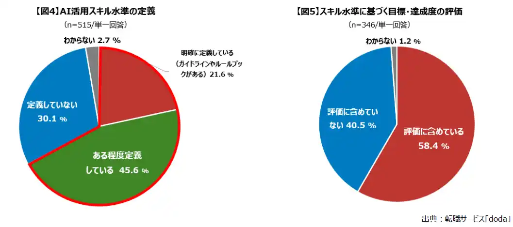 | AI活用スキルの水準を定義する企業は約7割、うち評価にも含めている企業は約6割 | |||||||||||||