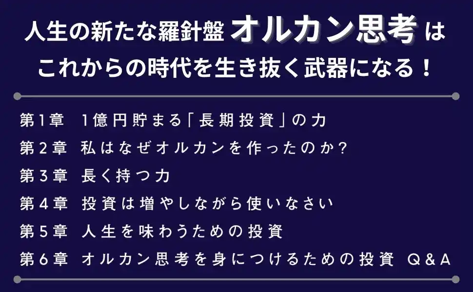 はじめに:世界経済と、私たちの人生をつなぐ思考法 第1章:1億円貯まる「長期投資」の力――世界経済を味方につける 第2章:私はなぜオルカンを作ったのか?――eMAXIS Slimシリーズが生まれるまで 第3章:長く持つ力――オルカンに学ぶ資産形成の哲学 第4章:投資は増やしながら使いなさい――投資で得たお金の出口戦略 第5章:人生を味わうための投資――私がオルカンでやりたかったこと 第6章:オルカン思考を身につけるための投資Q&A おわりに:託された一行のメール |