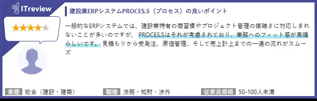 建設業ERPシステム「PROCES.S(プロセス)」のレビューページはこちらです。 |