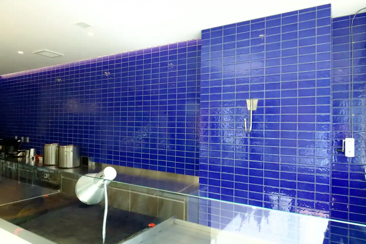 新店舗「PAPABUBBLE 渋谷青山店」は、白とウッドを基調に、青いタイルが印象に残る内装に仕上げました。どこか創業当時を思わせる空間のなかで、働く人や学生が「帰りにギフトを買うならここ」と自然に思い出し、ふと立ち寄れる存在を目指しています。 |