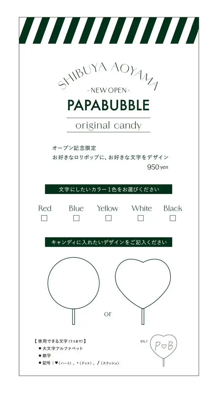 渋谷青山をイメージしたキャンディのプレゼントや、この場所でしか体験できないオリジナルキャンディ制作など、オープンを彩る企画をご用意しました。 |
