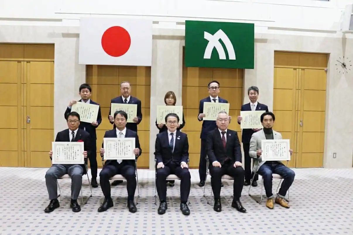 3月10日、働き盛りの健康づくり支援事業「事業所まるごと健康宣言」の表彰式がに行われ、今回で2度目となる香川県知事賞を受賞いたしました。当社副社長(前列最右)が出席 |