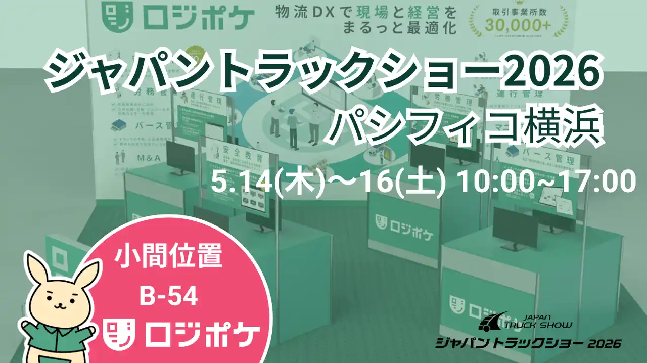 物流事業者向けSaaS・プラットフォーム「ロジポケ」と物流業・建設業・製造業に特化した転職サイト「クロスワーク」を提供するX Mile株式会社(読み:クロスマイル、本社:東京都新宿区、代表取締役:野呂 寛之、以下「当社」)は、2026年5月14日(木)~16日(土)にパシフィコ横浜で開催される「ジャパントラックショー2026」に出展いたします。 |