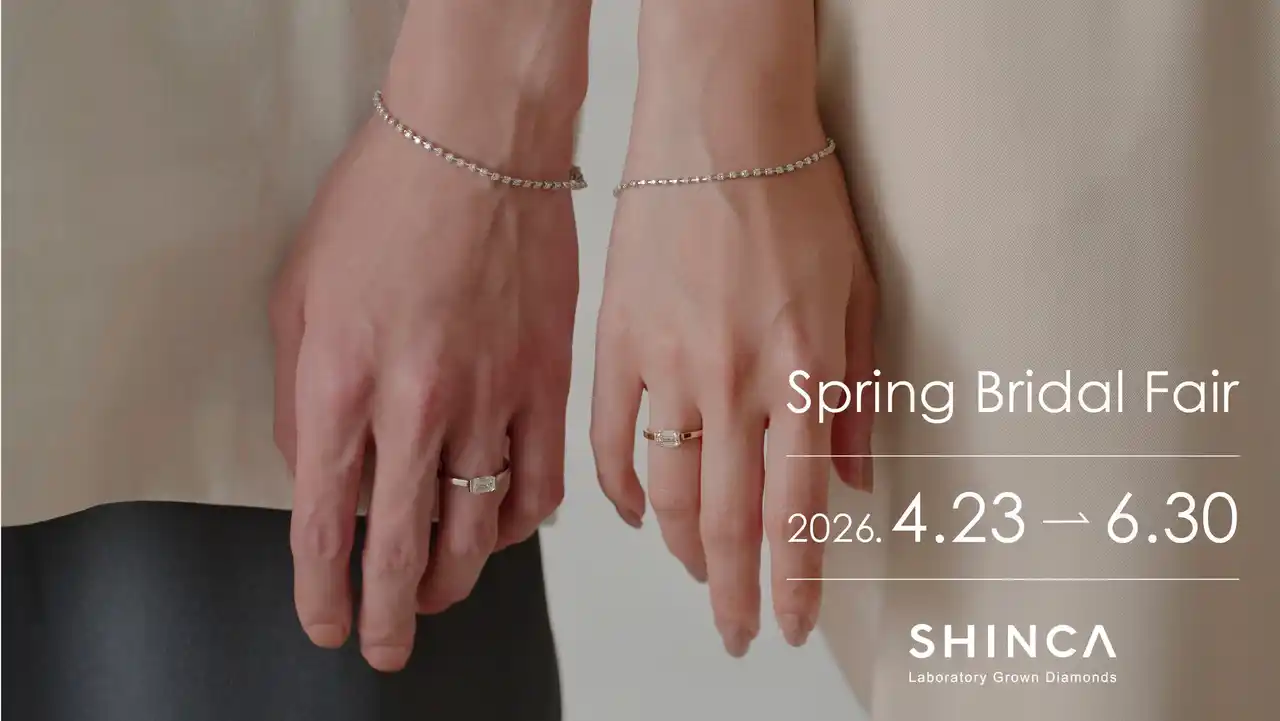 株式会社 今与(本社:京都市中京区、代表取締役社長:今西信隆)が製造・販売する、ラボグロウンダイヤモンドジュエリーブランド「SHINCA(シンカ)」は、4月23日(木)から6月30日(火)まで、国内直営店(SHINCA 銀座、IMAYO 京都御池店)とIMAYO 公式オンラインショップ(IMAYO Boutique)にて「Spring Bridal Fair 2026」を開催いたします。期間中にエンゲージリング、マリッジリングなどのブライダルジュエリーをご購入またはご注文のお客様で、SHINCA Instagram公式アカウントをフォローいただいた方には、イーフローラ加盟店&日比谷花壇グループでご利用いただける「全国共通フラワーギフトカード」をプレゼントいたします。 |