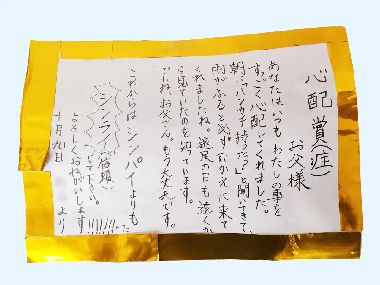 娘様からのユーモアあふれる表現とお父様への深い想いが伝わる賞状 |