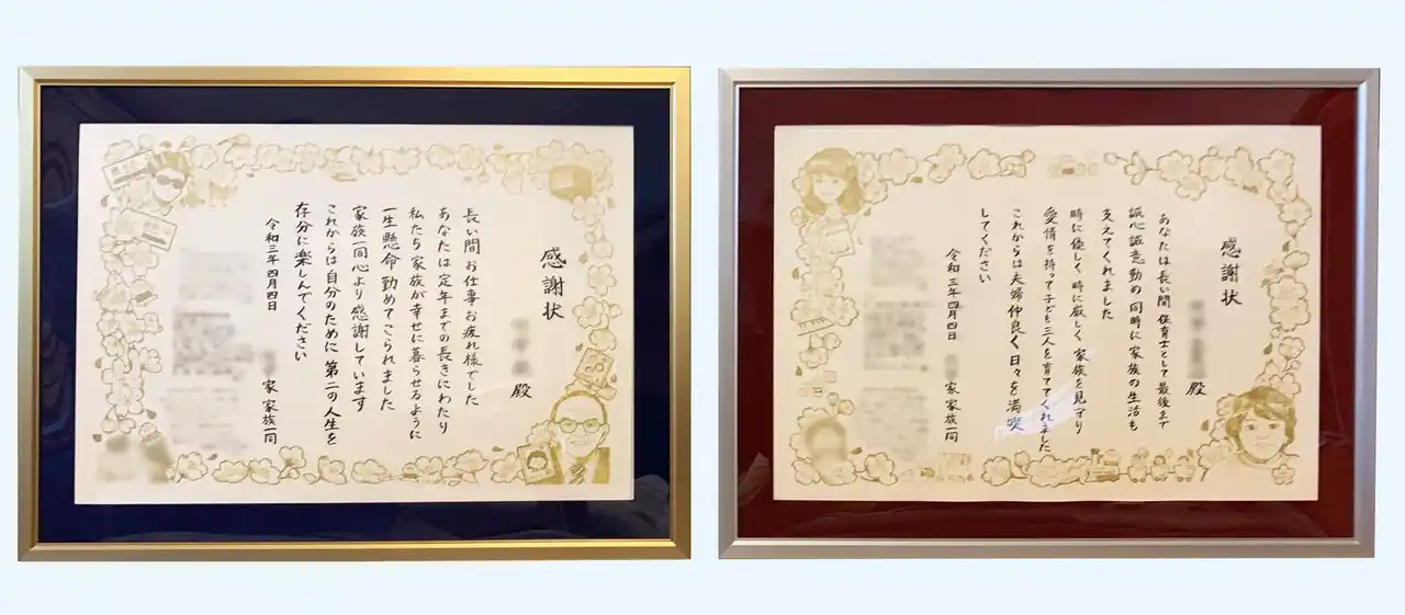 それぞれの賞状には、贈る側の想いと受け取る側の記憶が重なり合い、かけがえのない物語が丁寧に描かれています。 |