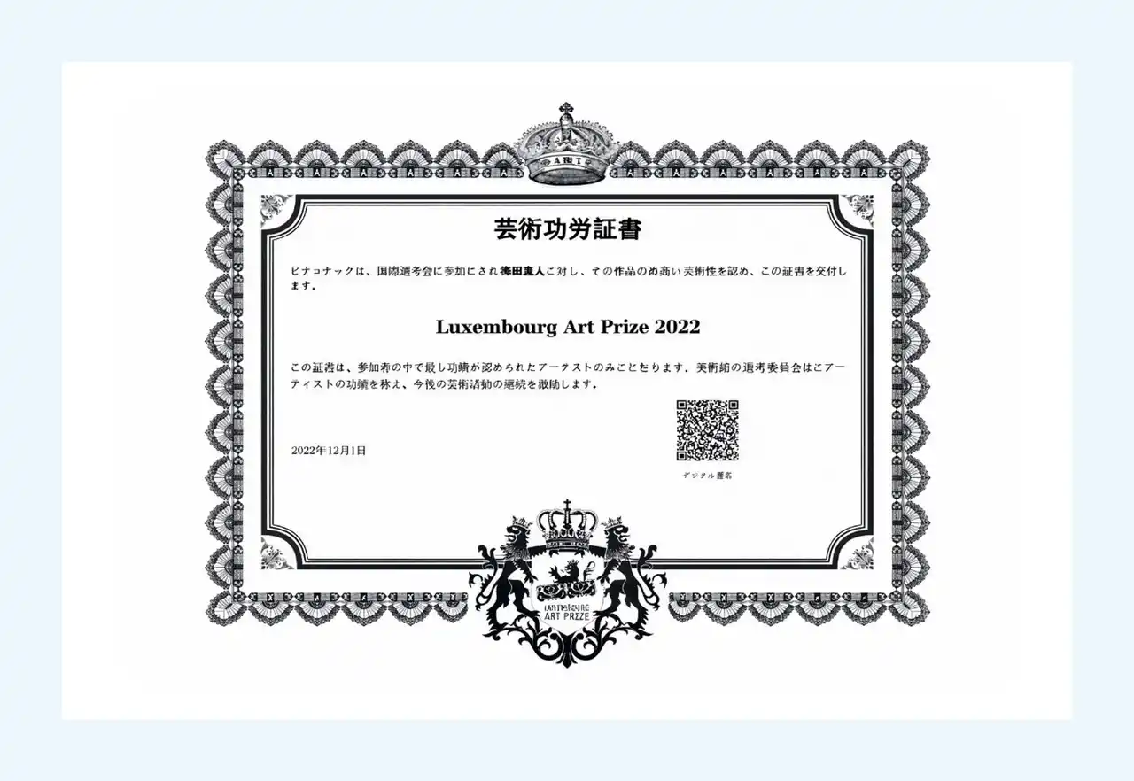 ・国際的な評価と技術的価値を併せ持つ、希少性の高いデジタル賞状。 |