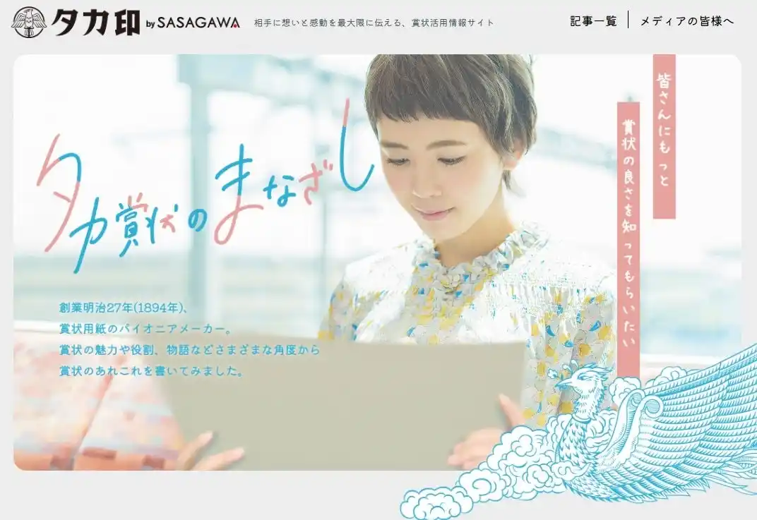 【タカ賞状のまなざしURL】https://www.sasagawa-brand.co.jp/sp/manazashi/