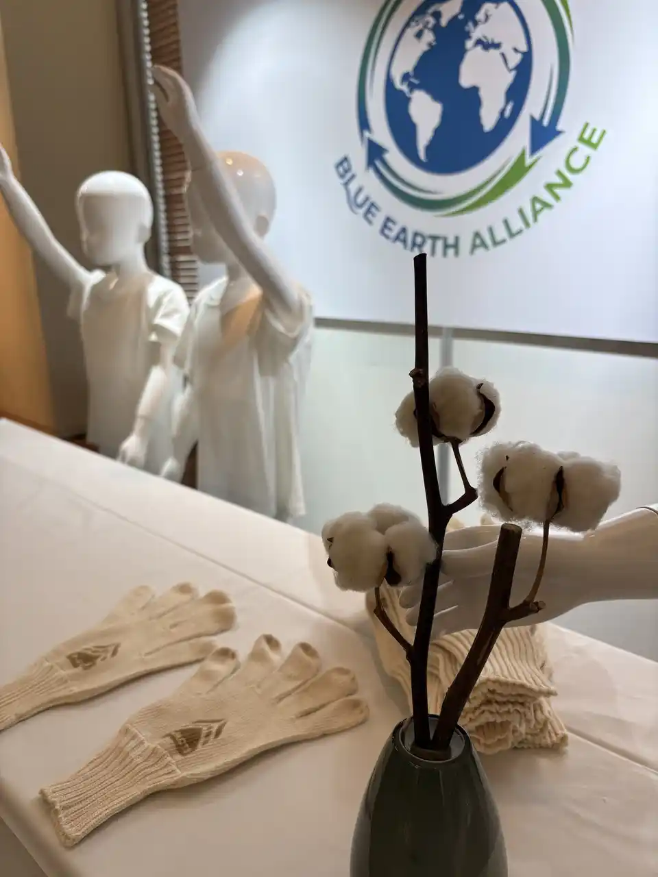 Blue Earth Alliance 展示ブース。P-FACTS対応製品やコットンを展示 |