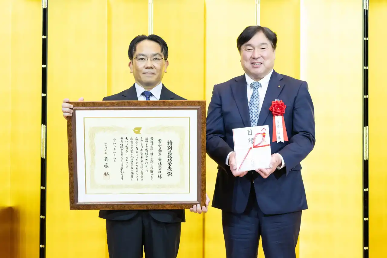 | 式典では、地域社会への感謝を込めた寄付金の贈呈が行われ、その取り組みが評価され江戸川区より最高位の表彰を受けました。 | |||||||||