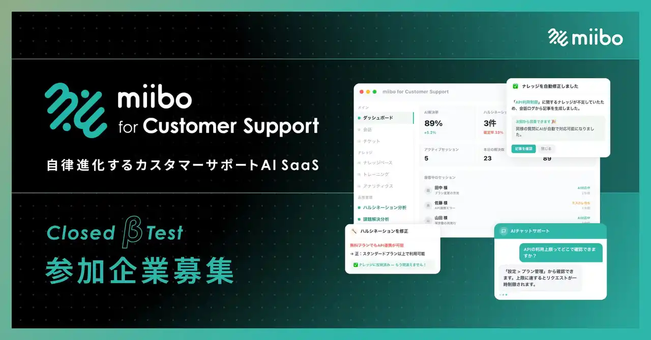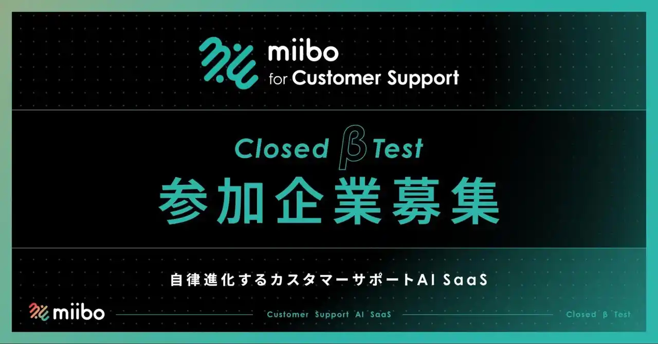 miiboは本日より、「miibo for カスタマーサポート」のクローズドβテスト参加企業を5社限定で募集します。 |