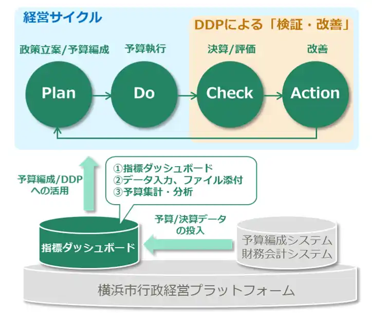 本調達は、中期計画における政策体系及び指標の進捗状況と、予算情報を連携・可視化させ、データドリブンプロジェクト(以下「DDP」)・予算編成・成果確認の各段階における作業の効率化とデータ共有の強化を進め、データに基づく効率的な行政運営の加速化・高度化を図ることを目的としています。 |