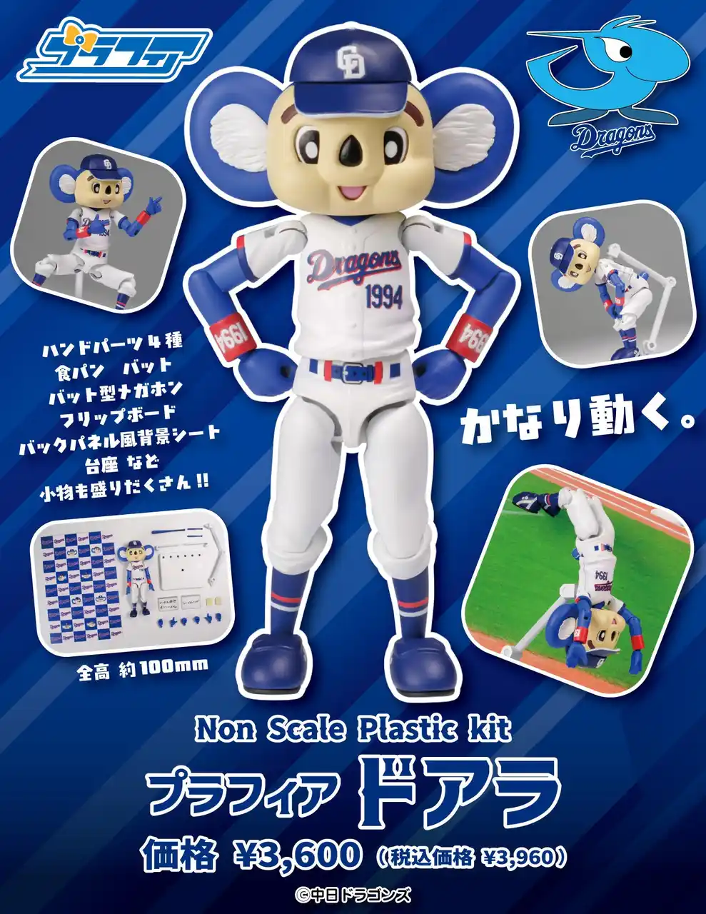 ドアラの他にバットやメガホン、パンに加えてお馴染みのフリップボードのパーツも付属。 |