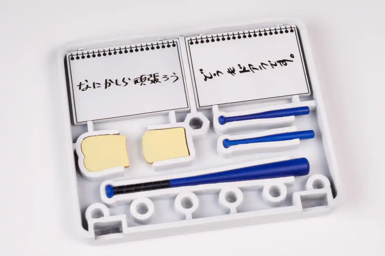 【付属物】 ハンドパーツ4種・バット・バット型メガホン2個 食パン2個・フリップボード2枚・専用台座 バックパネル風背景シート1枚