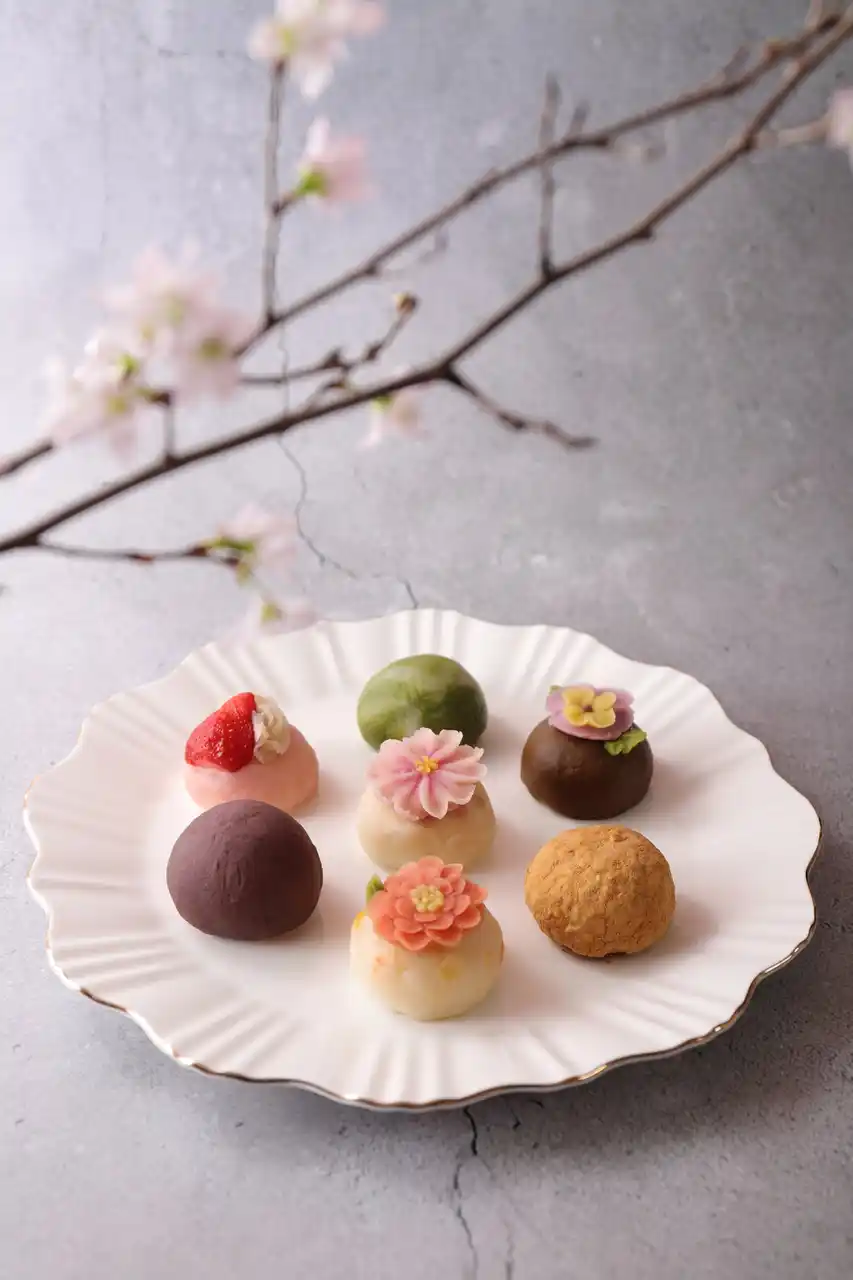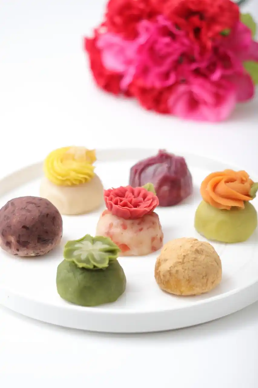 素材にもこだわり、使用する餡は全て、兵庫県芦屋市で創業100年を超える御菓子司 杵屋豊光の白こし餡(北海道産手亡豆)を使用し、なめらかな口どけと気品ある甘さを実現。彩りには天然色素を用い、見た目の美しさだけでなく身体にもやさしい味わいに仕上げました。 |