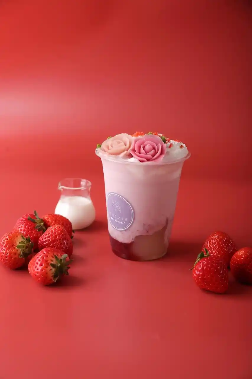 大人気花咲くわらび餅ドリンクにいちごミルクが新登場。