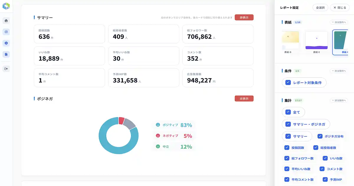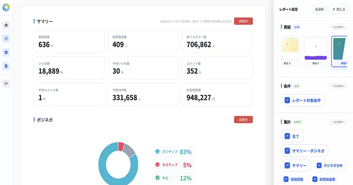 競合ツールのリニューアルでは「機能追加」が強調されることが多い中、Social Reportは逆の判断をしました。「代理店・マーケターが実務で本当に使う機能だけ」を基準に設計し、画面の複雑さの原因となっていた機能の整理・統合を行っています。「多機能であること」よりも「迷わず使えること」を選びました。 |