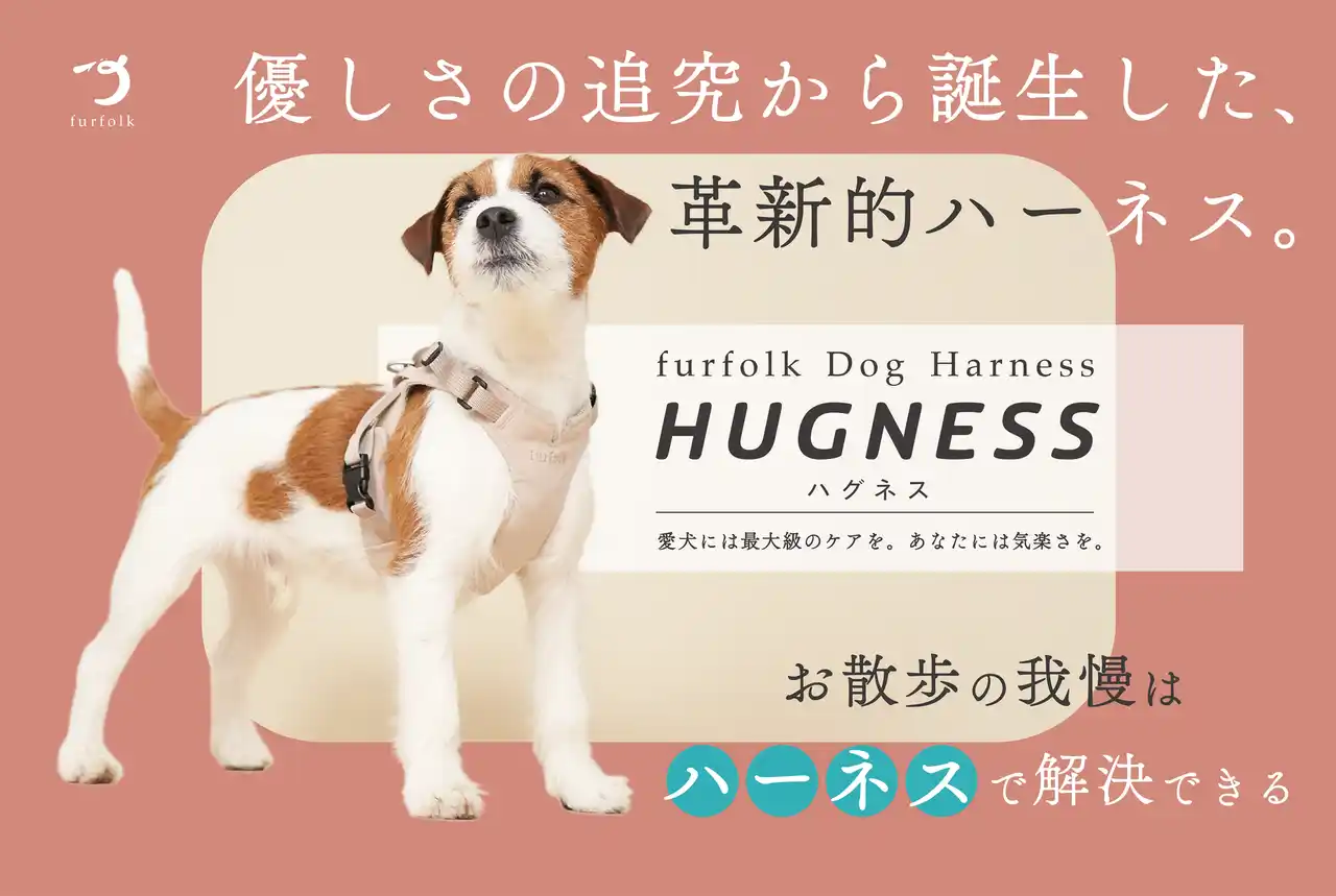 ドッグライフブランド「furfolk(ファーフォーク)」(運営:株式会社studio empath / 代表:松本和也) は、2026年4月2日より開始した次世代ドッグハーネス「HUGNESS(ハグネス)」のクラウドファンディングにおいて、開始わずか12時間で目標金額100%を達成。さらに、ネクストゴールも達成し、支援額70万円を突破いたしました(2026.4.16時点)。多くの愛犬家から「愛犬の身体への負担軽減」と「圧倒的な着脱のしやすさ」に期待の声が寄せられています。これに伴い、保護犬施設への寄贈活動をさらに広げるべく、プロジェクトを継続中です。 |
