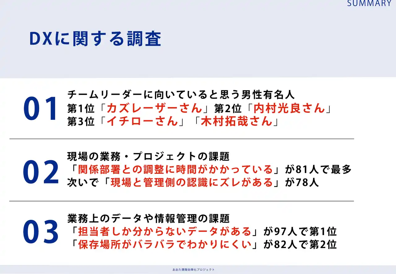 | ※アンケート結果を引用する場合は「引用:おおた開発効率化プロジェクト」と記載し、該当ページのURLをリンクしてください。 | ||||