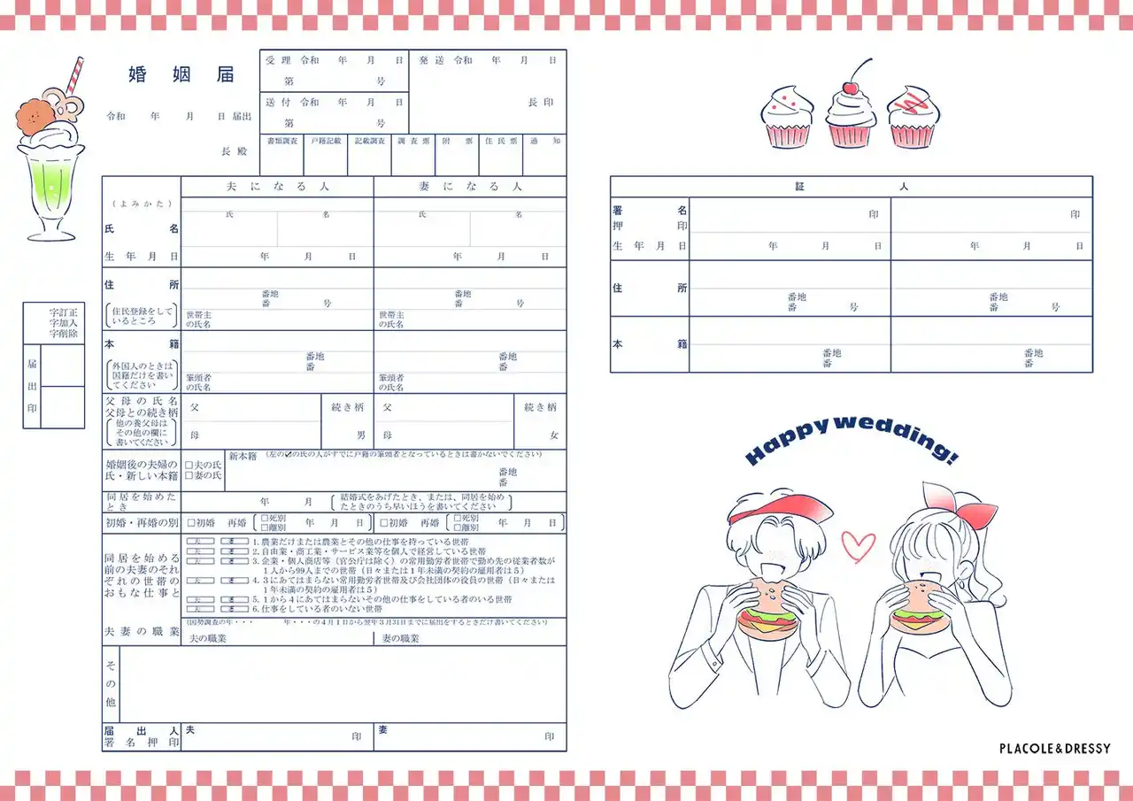 | 「PLACOLE & DRESSY」ブランドを展開する冒険社プラコレ(本社:神奈川県鎌倉市、代表取締役CEO:武藤功樹)は、全4種の婚姻届を2026年4月分として制作・公開いたしました。 | |||