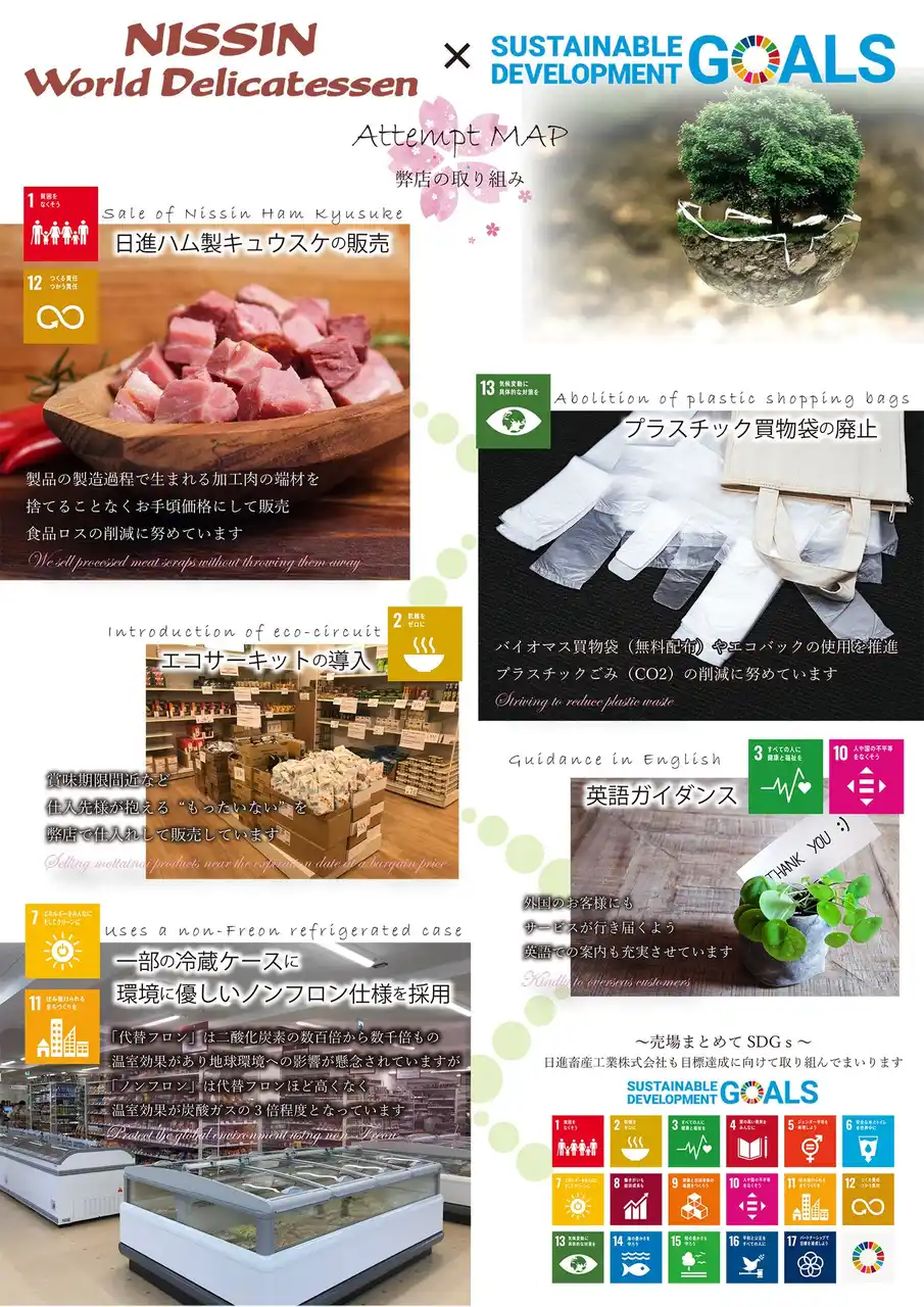 弊社の本拠地である東京都港区は大使館の多い地域なので、日進ワールドデリカテッセンはこの先も駐在の外国人の方にとって役立つスタイルで在り続けます。海外の方のリクエストやご要望にお応えすることでお店が育てられたと感じており、その期待に沿うことで、日本駐在の方にとってなくてはならないお店として伝承されていることも耳にしますし、日本の方のクチコミ人気にも繋がっていると感じています。これらを踏まえ、この先も弊社では、日本と世界のお客様が手を取り合える永続可能な未来を夢見て、持続可能な開発目標を多く実践していきます。 |