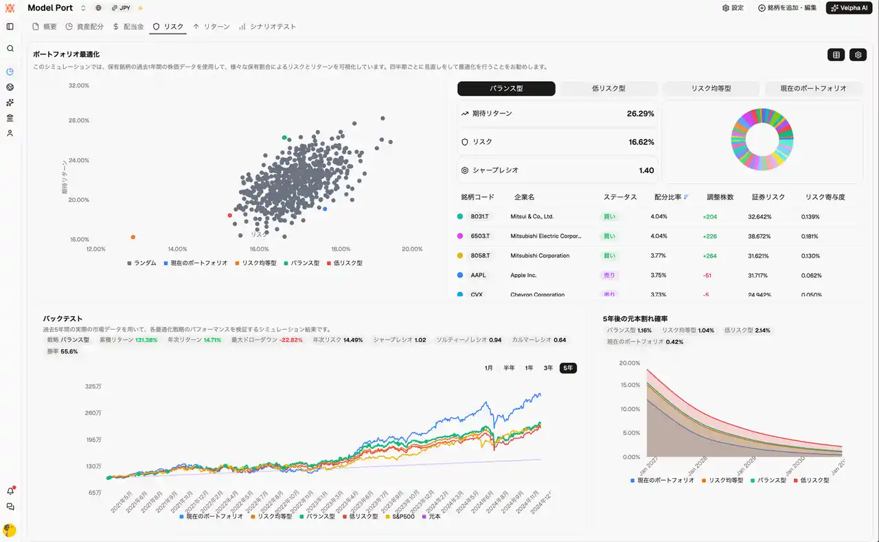 個別銘柄だけではなく、ポートフォリオ全体のバランスや分散を考慮した投資判断を支援します。 |