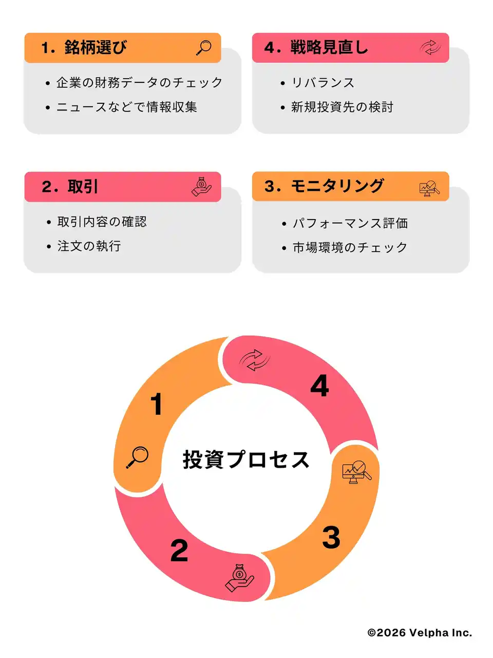 Velphaは、個人投資家の資産運用における投資プロセス全体を、AIエージェントによって支援するWebサービスです。 |