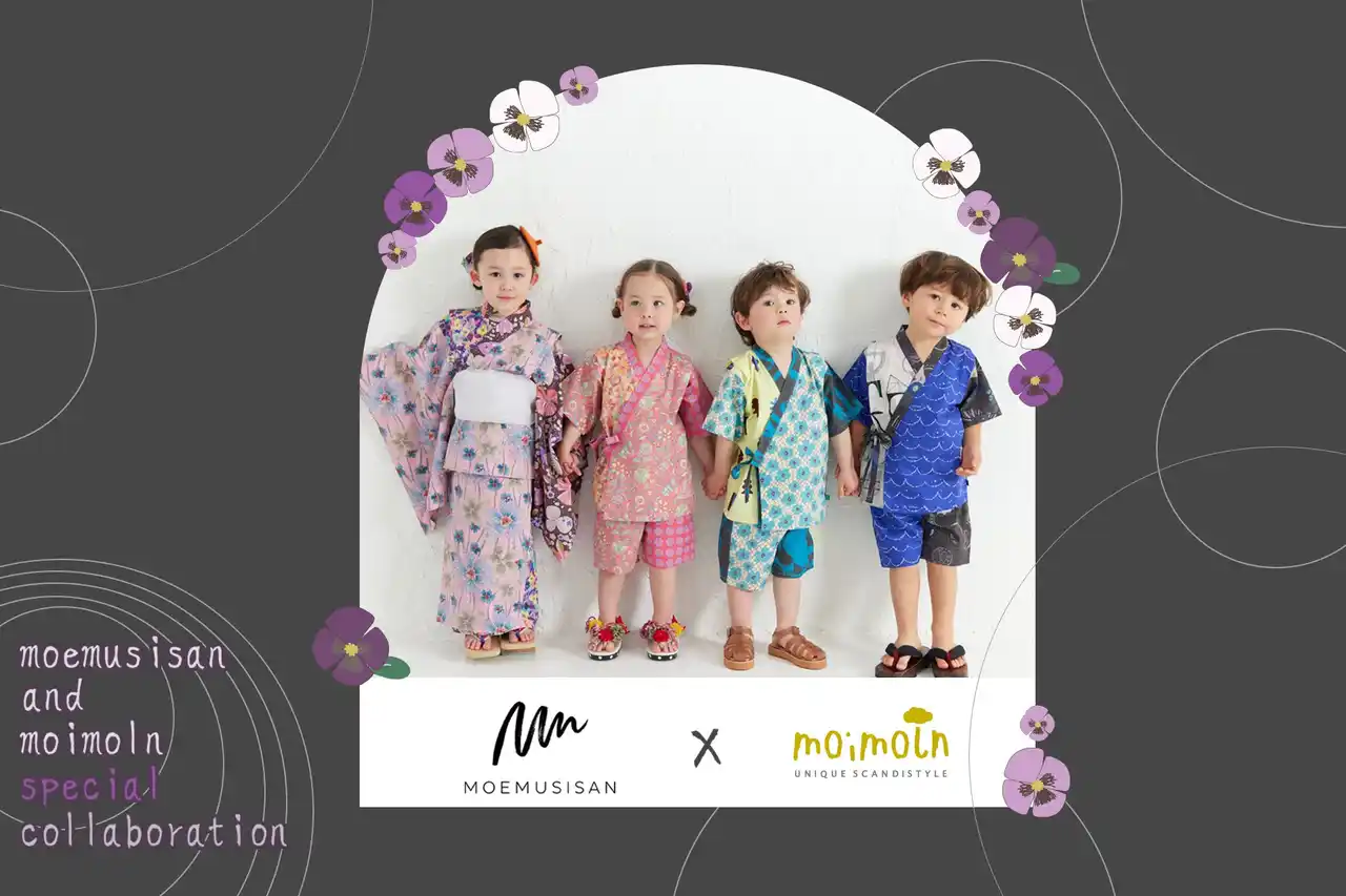 デザインは、MOEMUSISANによる和のテキスタイルと、モイモルンならではのポップで愛らしいグラフィックを掛け合わせた完全オリジナル。和の趣を感じさせながらも、日常使いしやすい絶妙なバランスに仕上げました。甚平・浴衣それぞれで異なるデザイン展開を行い、選ぶ楽しさも広がっています。 |
