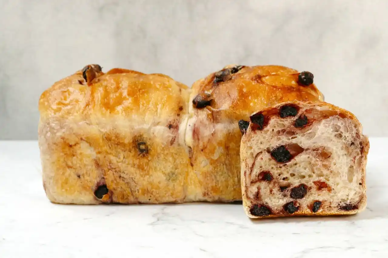 ブルーベリーを練りこんで“食パン”に仕上げました。もっちり、しっとりとした食感ととも |