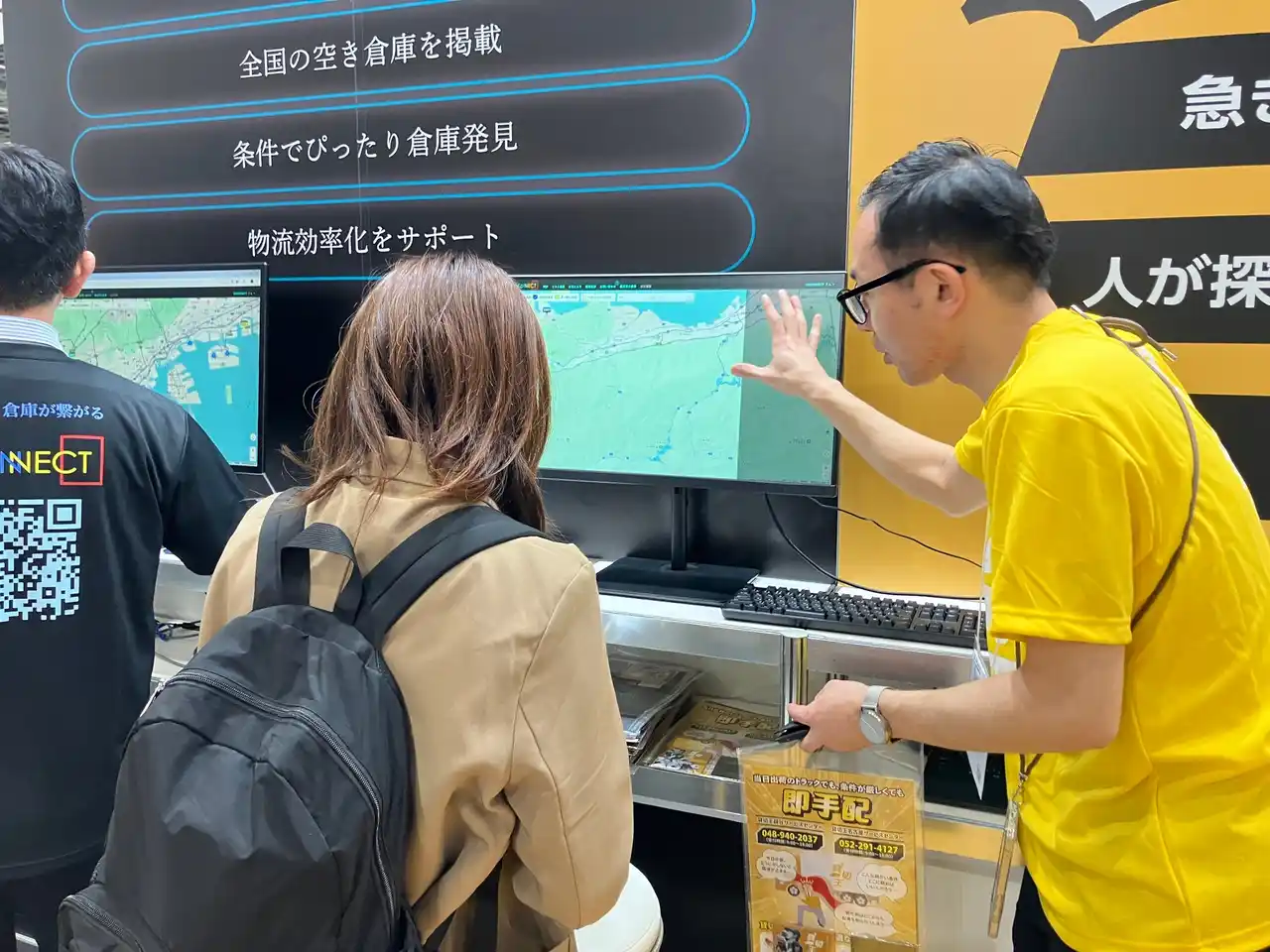 当社スタッフが「SOKONNECT」を活用した倉庫探しや、「貸切王」による配車のご提案などを行い、ご来場者の皆様から多くの反響をいただきました。 |