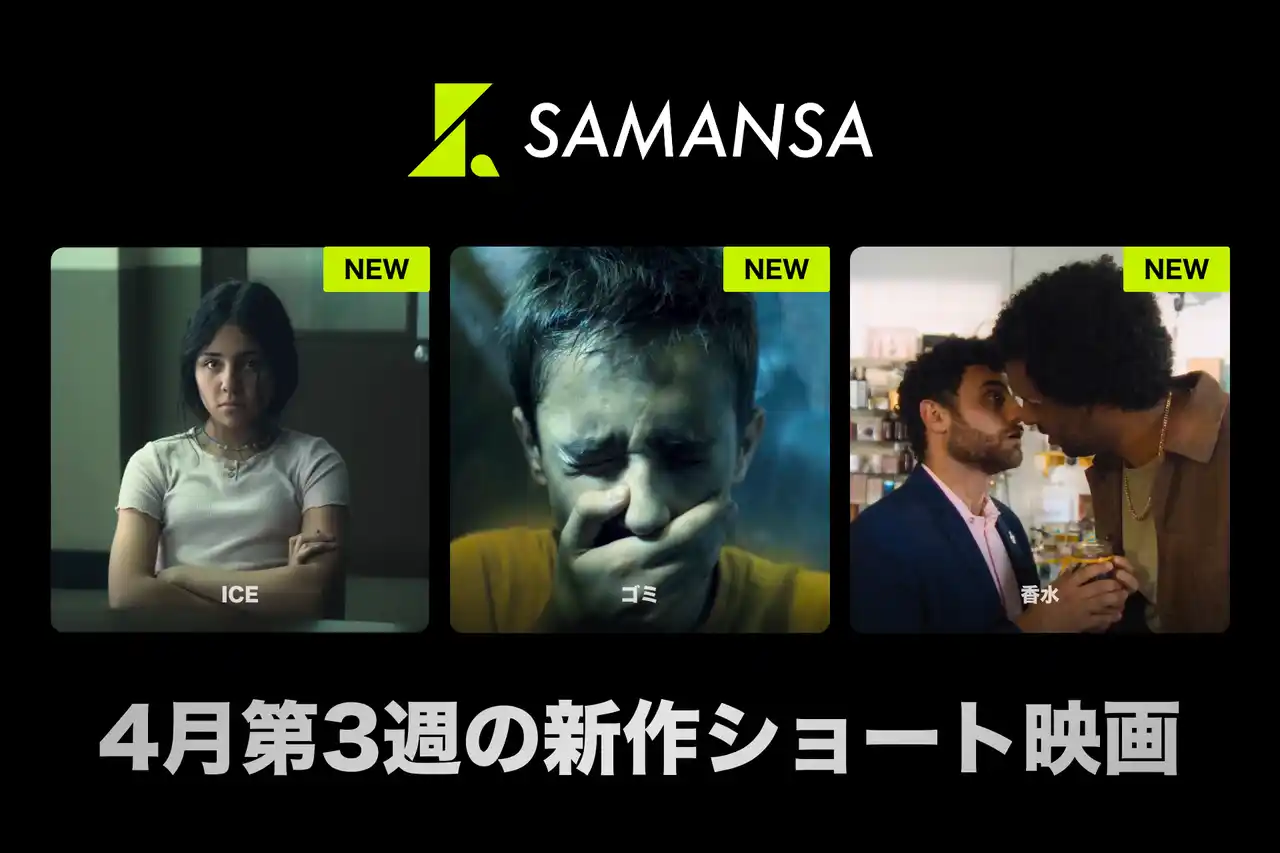 株式会社SAMANSA(本社:東京都渋谷区、代表取締役社長:岩永祐一)は、運営するショート映画配信サービス「SAMANSA」にて2026年4月17日(金)に新作となる3本『ICE』『ゴミ』『香水』の作品を配信を開始することをお知らせいたします。