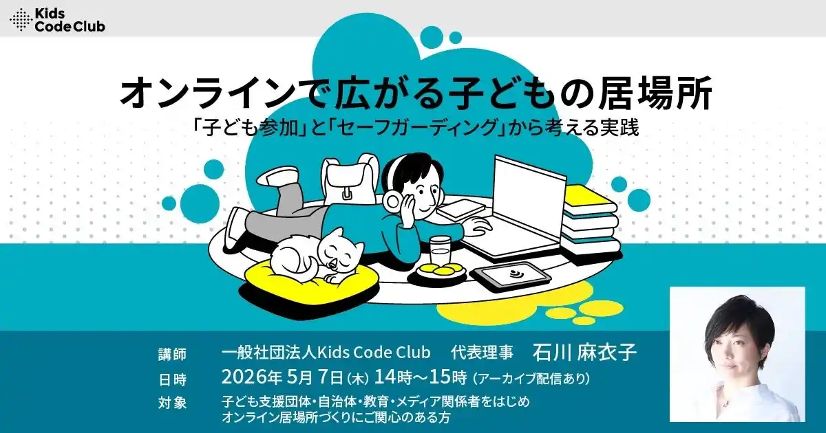 一般社団法人Kids Code Club(所在地:福岡県福岡市、代表理事:石川麻衣子)は、子ども支援団体、自治体や教育関係者を対象に、「オンラインでの居場所づくり」をテーマにしたオンラインセミナーを開催いたします。 |