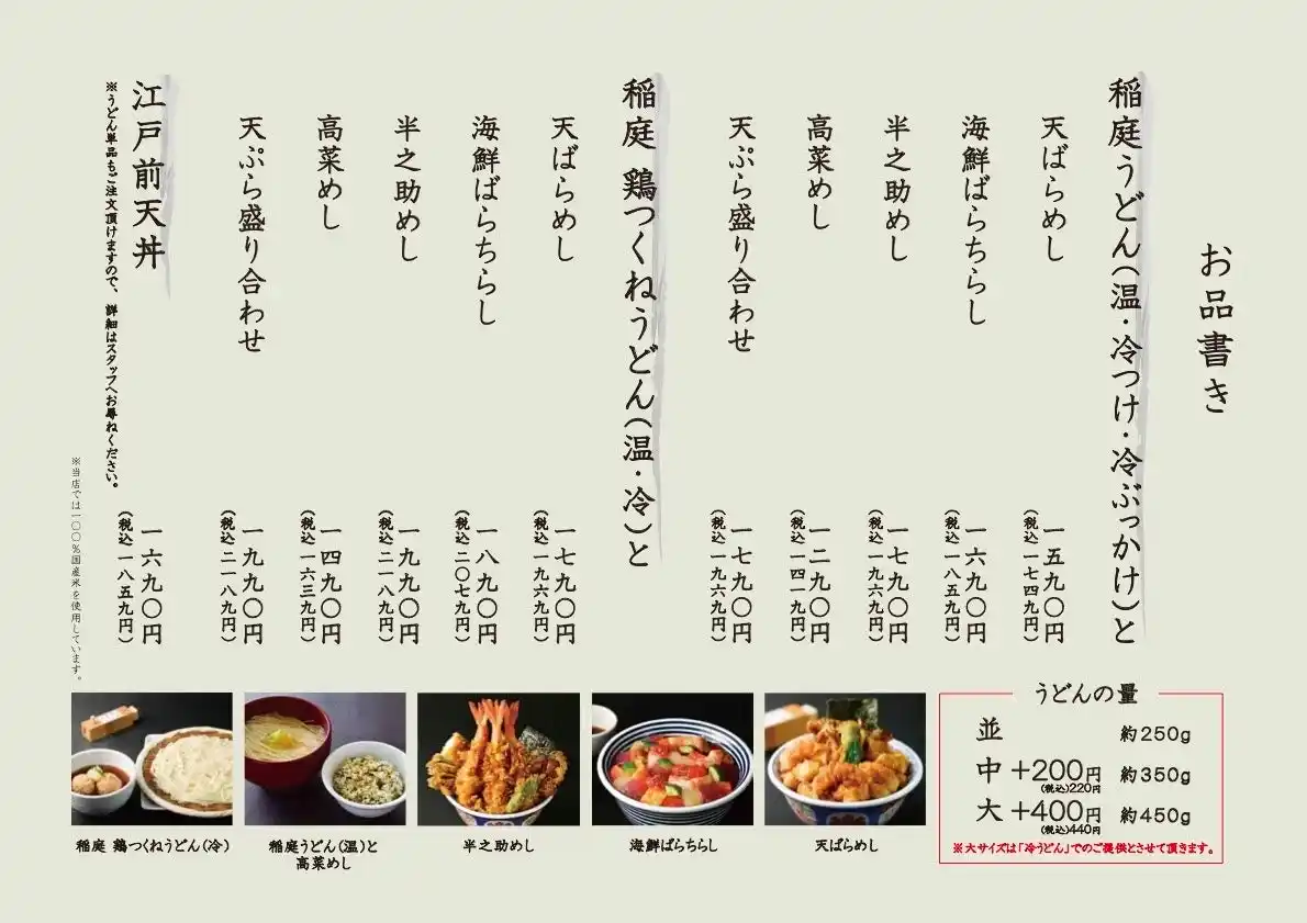 今回は、稲庭うどん業態として10年ぶり2店舗目となる出店です。 より幅広いお客様にお楽しみいただくため、「金子半之助」の代表的なメニュー「江戸前天丼」もご用意しております。 活気あふれる商業施設「イクスピアリ(R)」の新たな食のスポットとして、ショッピングやレジャーの合間に、「金子半之助」こだわりの「稲庭うどんと丼めし」をお楽しみください。 |