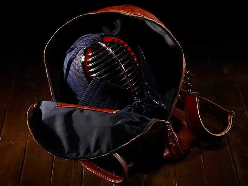 近年、剣道のスポーツ化が進むなか、防具袋や竹刀袋もナイロン製の軽量バッグが主流となり、かつて主流であった重厚な革製の武具袋はほとんど姿を消しました。 |