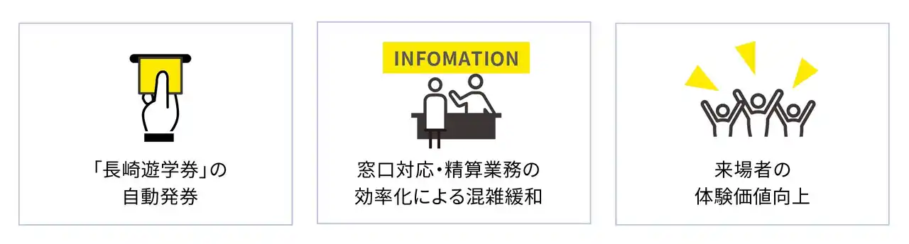 大浦天主堂では、窓口業務において人員体制の維持や継続性の確保に課題があり、慢性的なスタッフ不足も重なっていました。また、国内外から多くの来場者が訪れる中、マルチリンガル(多言語)対応やキャッシュレス決済対応ニーズも高まっていました。 また、修学旅行などの学生団体の多くが使う「長崎遊学券」は、学生一人ひとりが割引クーポン券を有人窓口で提示し、窓口スタッフによるクーポン券の確認・専用チケットの発券・会計処理を行っていたため、年間来場者数48万人(長崎居留地歴まちグランドデザイン令和元年度による)を超える大浦天主堂では、受付業務の負担増加や混雑の一因となっていました。 |