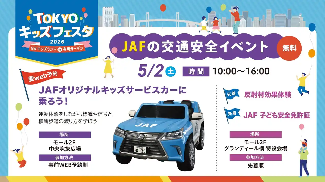 住友不動産商業マネジメント株式会社(本社:東京都新宿区 代表取締役社長:山本 直人)が、運営する複合商業施設「住友不動産 ショッピングシティ 有明ガーデン」(所在:東京都江東区)において実施する、「TOKYO キッズフェスタ GWキッズランド in 有明ガーデン」についてお知らせいたします。 |