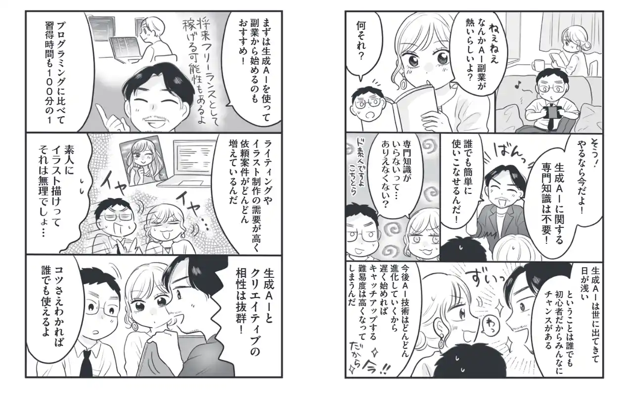 「AIの本なんて難しそう……」そんな読者の方にも、とにかくわかりやすいマンガで、AIの「必要なところだけ」をお伝えします。 |