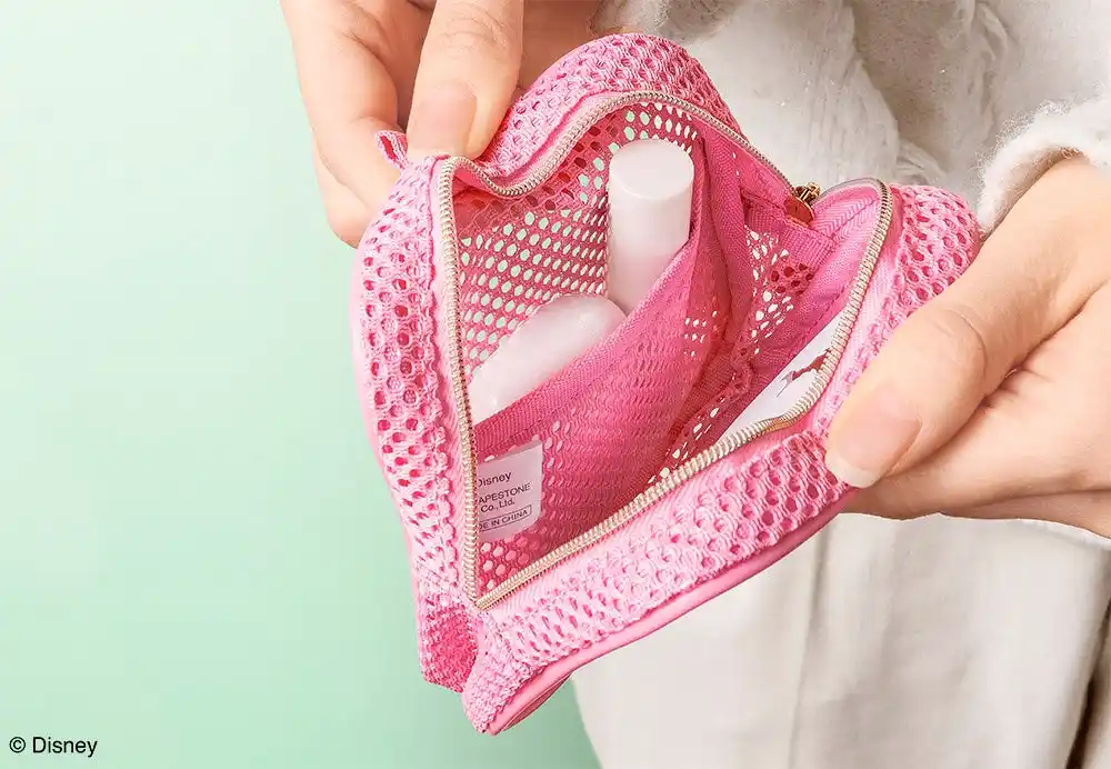 『クリアメッシュポーチ』は、内ポケットがついて小物が散らからず持ち歩けます。クリア素材とメッシュの組み合わせは、ビーチやスパなどリゾートシーンでも大活躍!『クリアメッシュバッグ』と組み合わせて使うのがおすすめ。 |