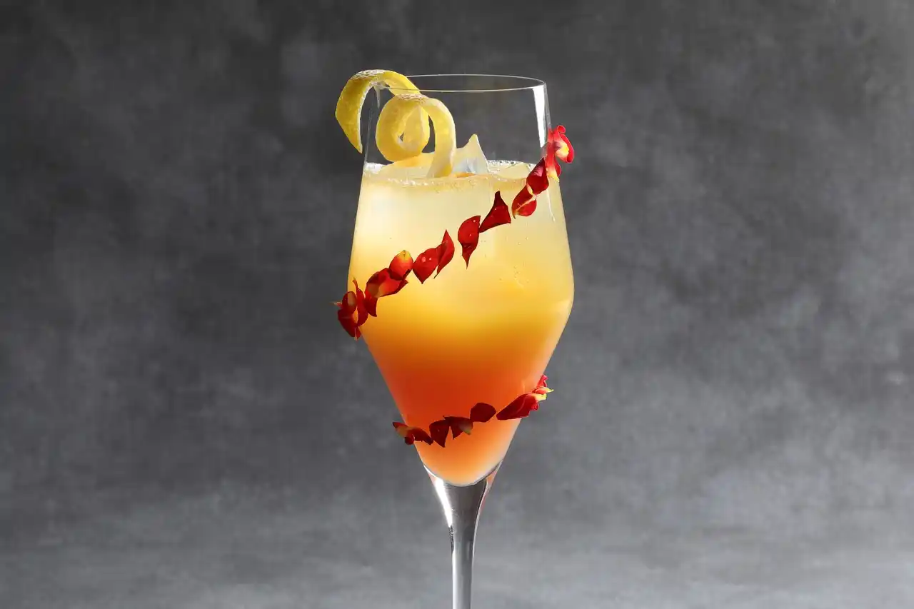 爽やかなスパークリングワインに桃の上品な甘みが調和したイタリア発祥のカクテル「ベリーニ」に、ローズとエルダーフラワーのシロップをアクセントに加えアレンジした、オリジナルカクテルです。 |