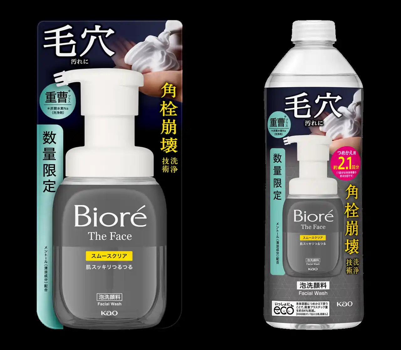 第1弾として重曹*1 配合の洗顔料『ビオレ ザ フェイス 泡洗顔料 スムースクリア プラス』 (本体・つめかえ用)、メントール*2 配合のメイク崩れ対策シート『ビオレ メイク直しシート』 『ビオレ メイク持続シート さらマット肌続く』を2026年4月25日より限定発売します。 |