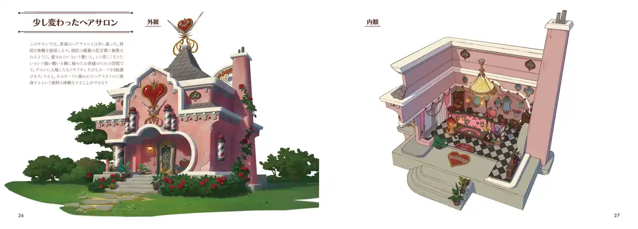 「ペットのアヒルと暮らす少女の家」「少し変わったヘアサロン」「UAP(未確認空中現象)研究者の家」「毒キノコでポーションを作る魔女の家」といった、遊び心あふれるコンセプトの数々は単なる空想の産物ではなく、住人の日々の暮らしや過去、性格、好み、生活の動線を徹底的に考え抜くことで、圧倒的な説得力を伴って描かれています。 |