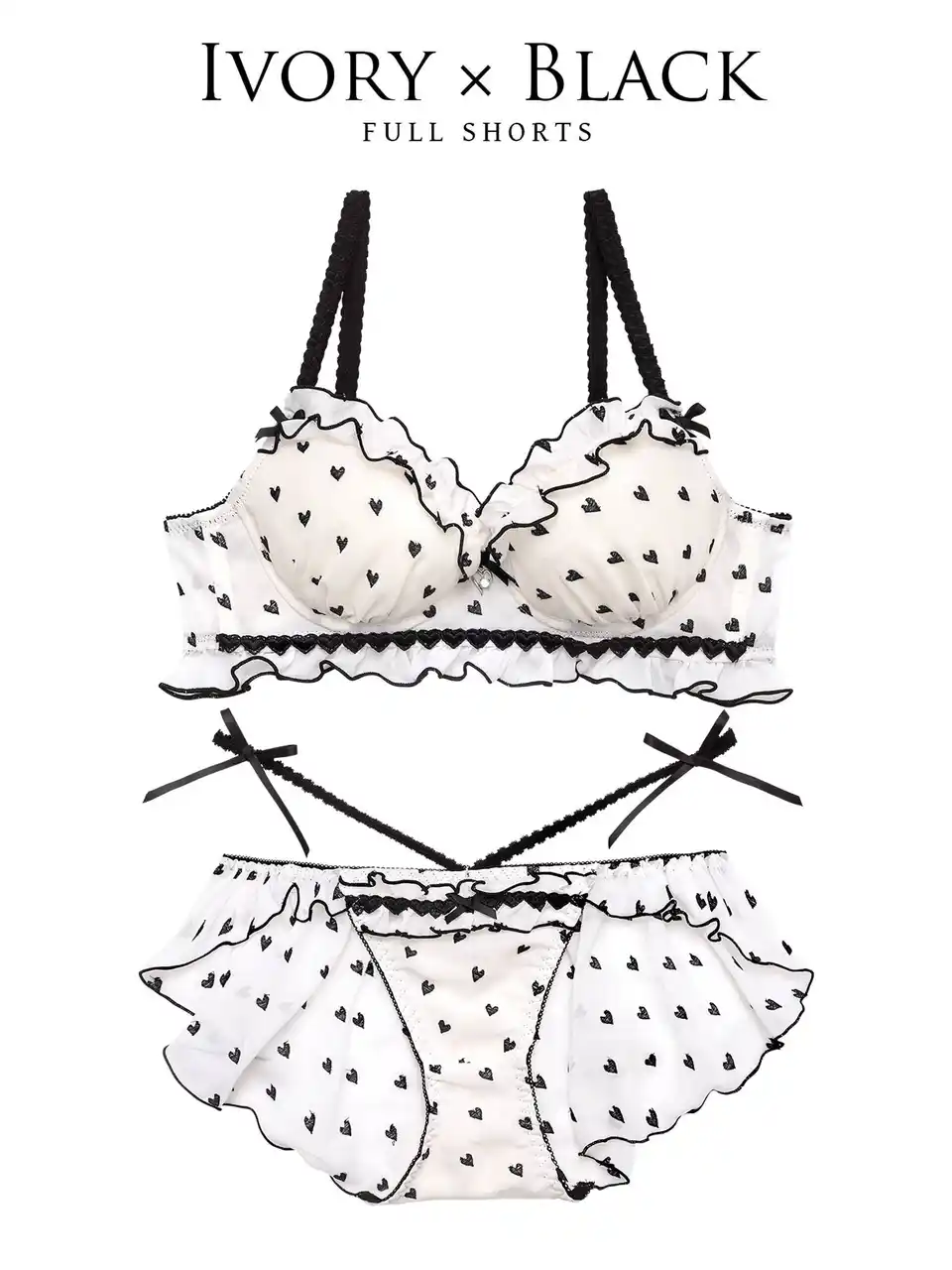 ハート刺繍が散りばめられたシフォンに、キャンディーみたいなフリル。