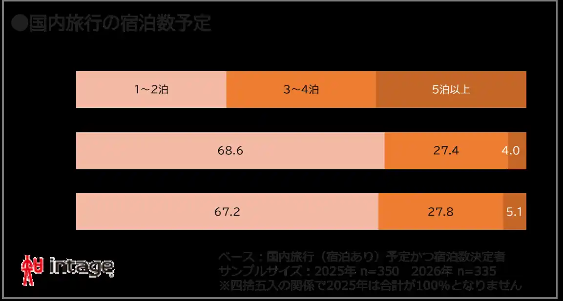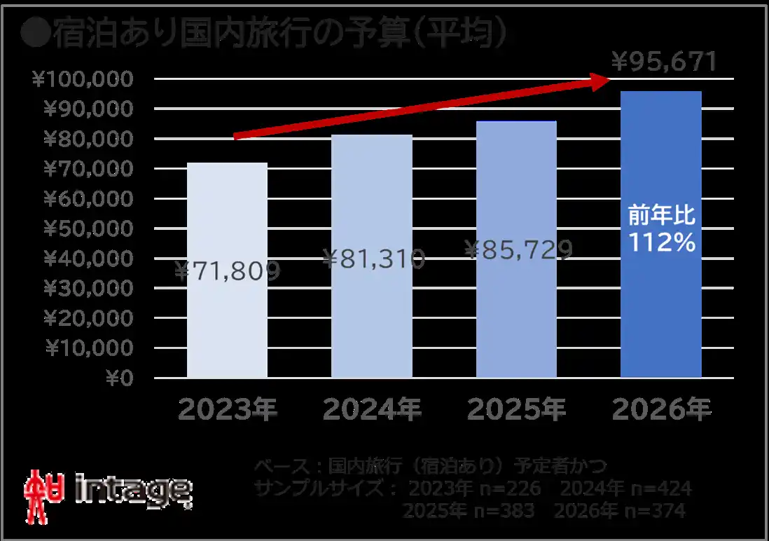 ・国内旅行予算は前年比1万円増加するも、宿泊数は伸びず。予算増加理由に6割が「物価高」を挙げる |