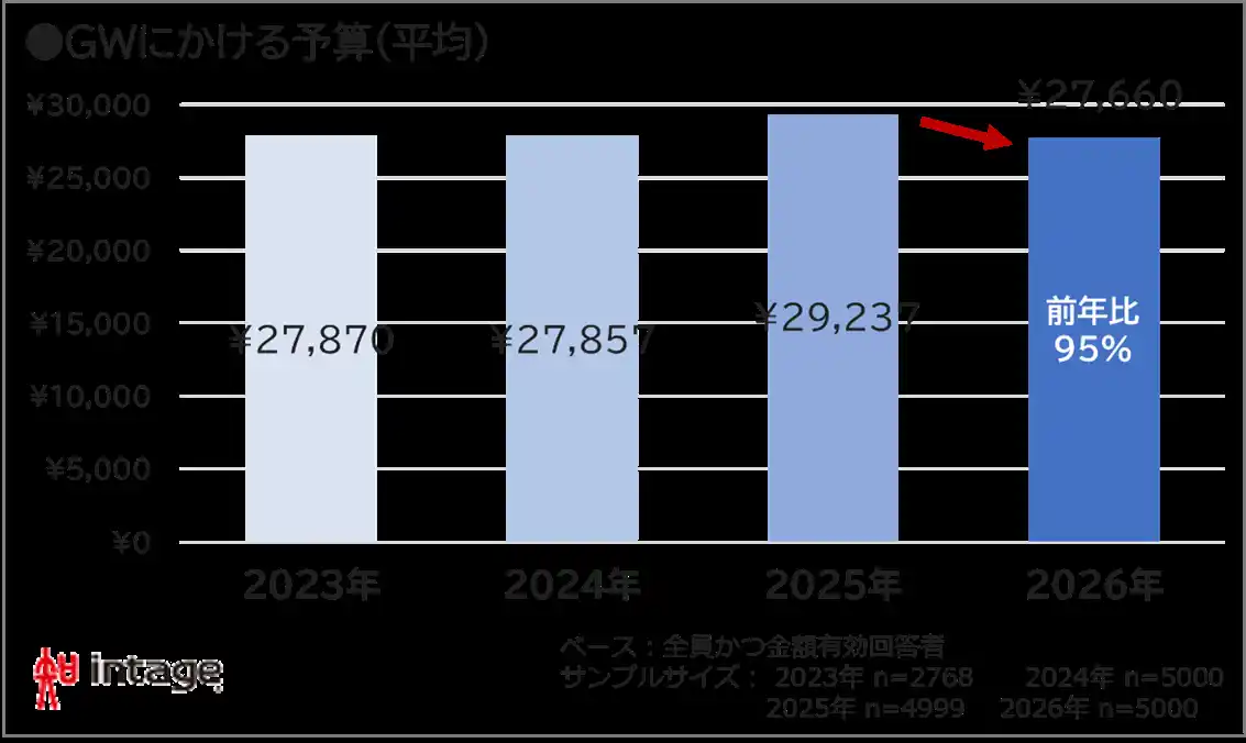 ・今年のGW予算は平均27,660円で前年比94.6%、外出・旅行需要が回復した2023年以降で最低水準 |