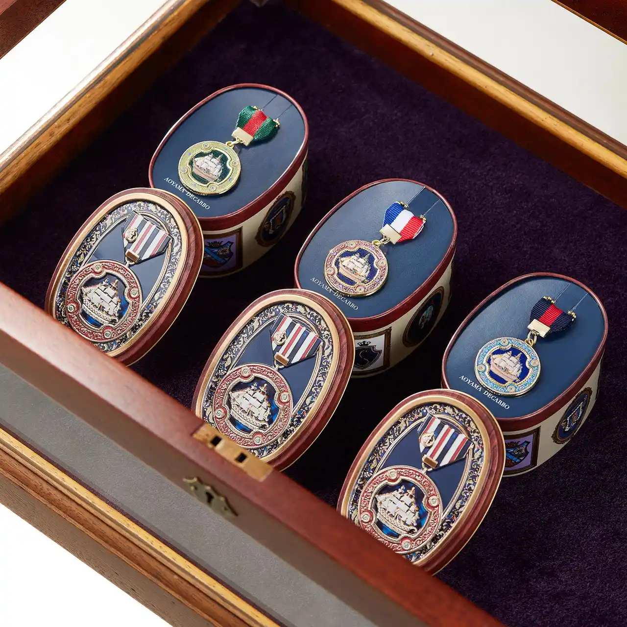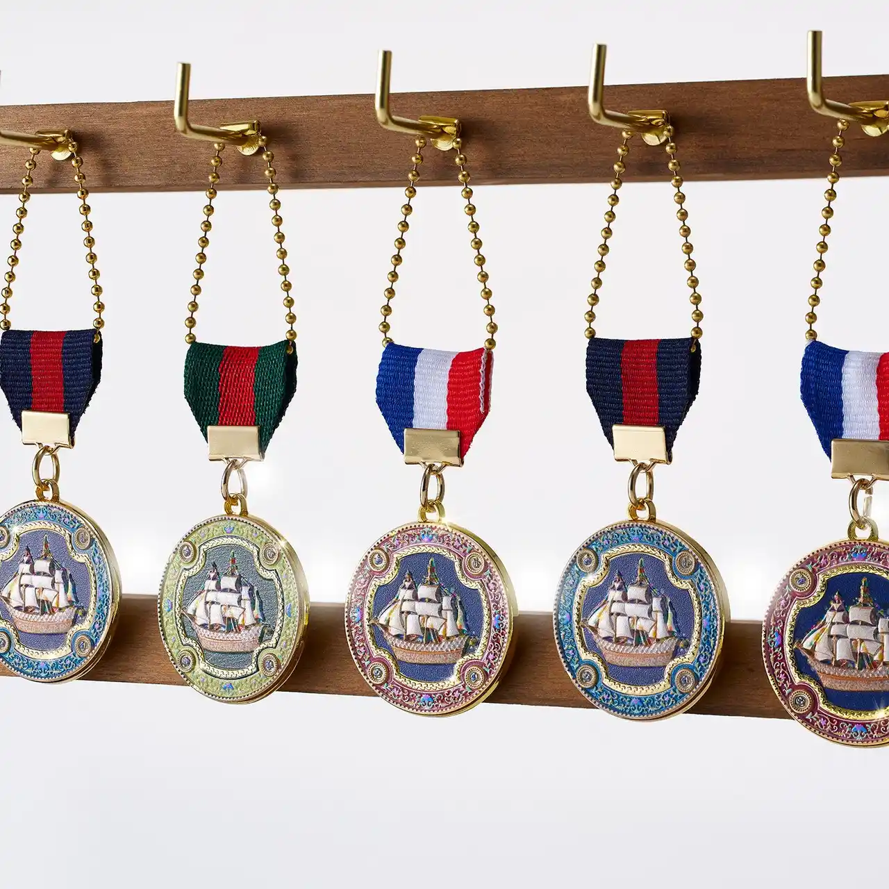 オリジナルメダルは、青山デカーボが金型からこだわって制作しました。帆船の細部に至るまでエンボス加工を施し、繊細でありながら重厚感のある仕上がりです。 |