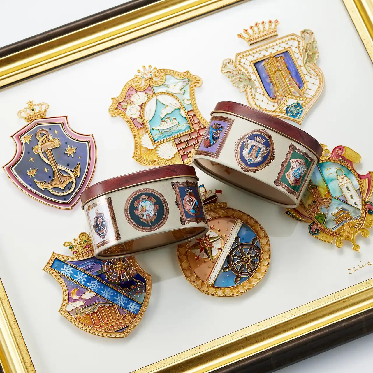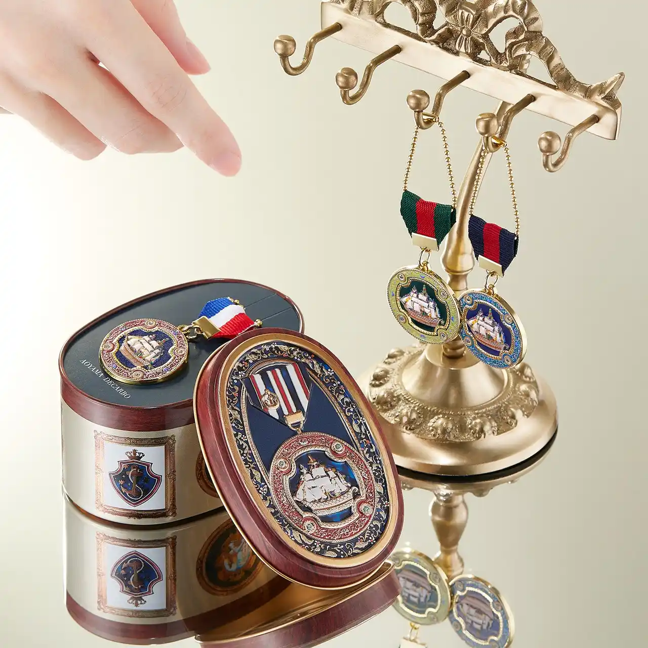 缶を開けると、蓋のデザインと同じメダルが現れます。 「開ける喜び」と「手元に残るときめき」を、ひとつに閉じ込めました。 |