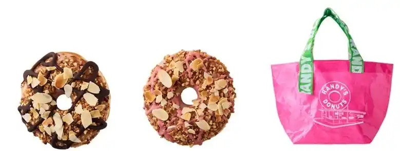 このたびのグランドオープンを記念し、「ランディーズドーナツ 池袋西口店」限定ドーナツ『アーモンドチョコレイズド』、『アーモンドストロベリーレイズド』を発売するとともに、限定グッズ『テイクアウトバッグピンク(S)』をご用意いたしました。 |