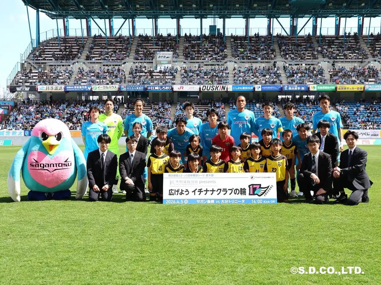 2026年4月5日(日)、駅前不動産スタジアムで開催された明治安田J2・J3百年構想リーグ 第9節 サガン鳥栖vs大分トリニータ戦において、木村情報技術株式会社(本社:佐賀県佐賀市、代表取締役:木村 隆夫、以下「木村情報技術」)はマッチデースポンサーとして協賛しました。 |