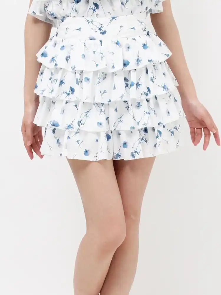 フリルデザインによるボリューム感がポイントのショートパンツ。 スカート風のデザインではありますが、ショートパンツ仕様のため短めの着丈でも安心して着用いただけます。 |
